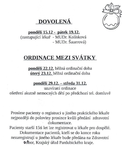 bohužel vám musím oznámit, že k 31.12.2025 ukončuji provoz dětské ambulance ve Svitavách, na poliklinice, Kollárova 22.